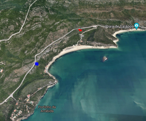 Com vistas deslumbrantes, desde o alto da Serra, consegue-se observar uma boa parte das inúmeras praias e baías, como é o caso da Baía do Portinho da Arrábida.